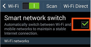 安卓 4.3 及以上系统可能启用“智能网络切换”,请关闭: