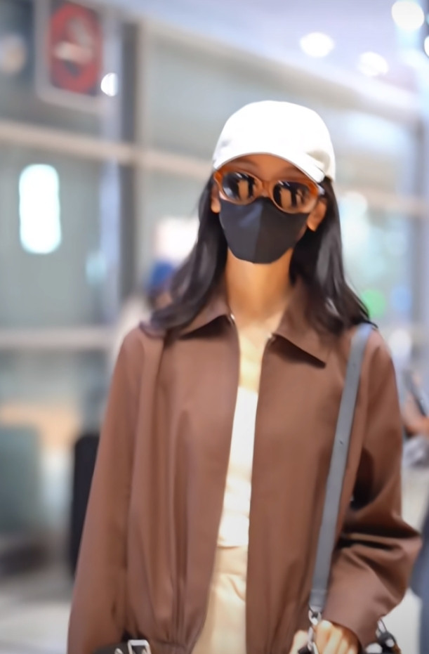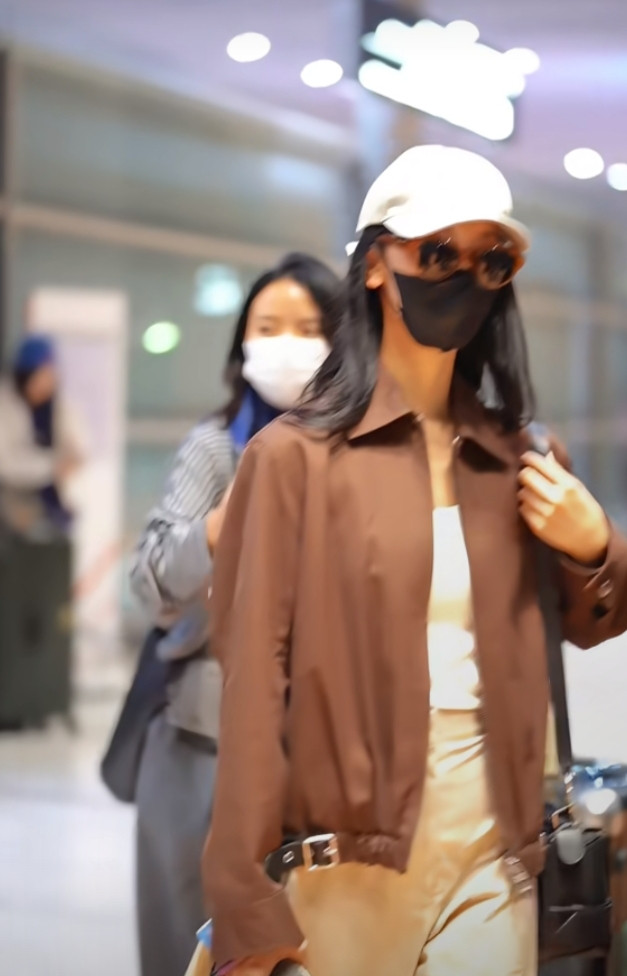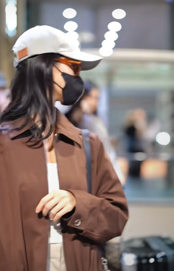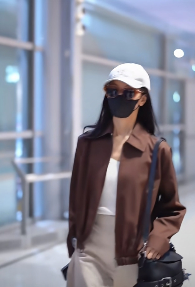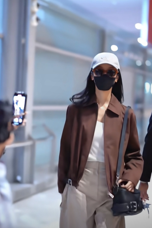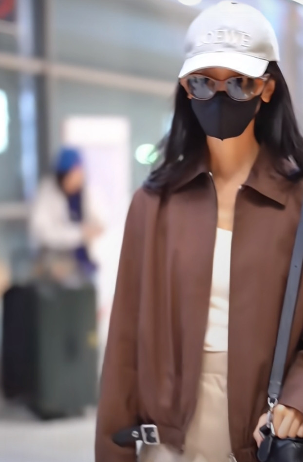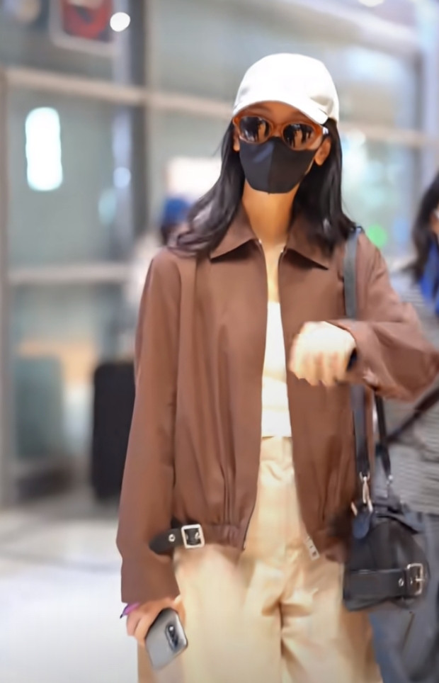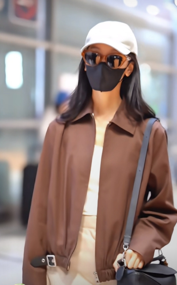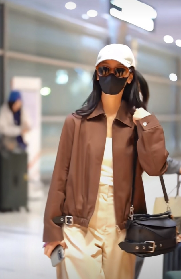 炒股配资平台排名陈都灵巴黎机场造型, 焦糖色夹克搭阔腿裤, 简约高级