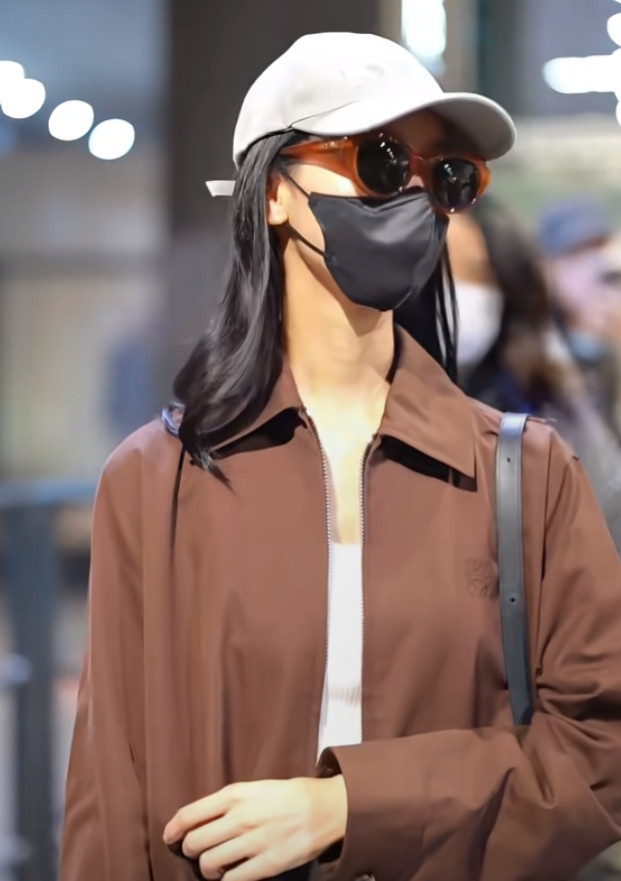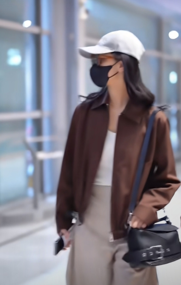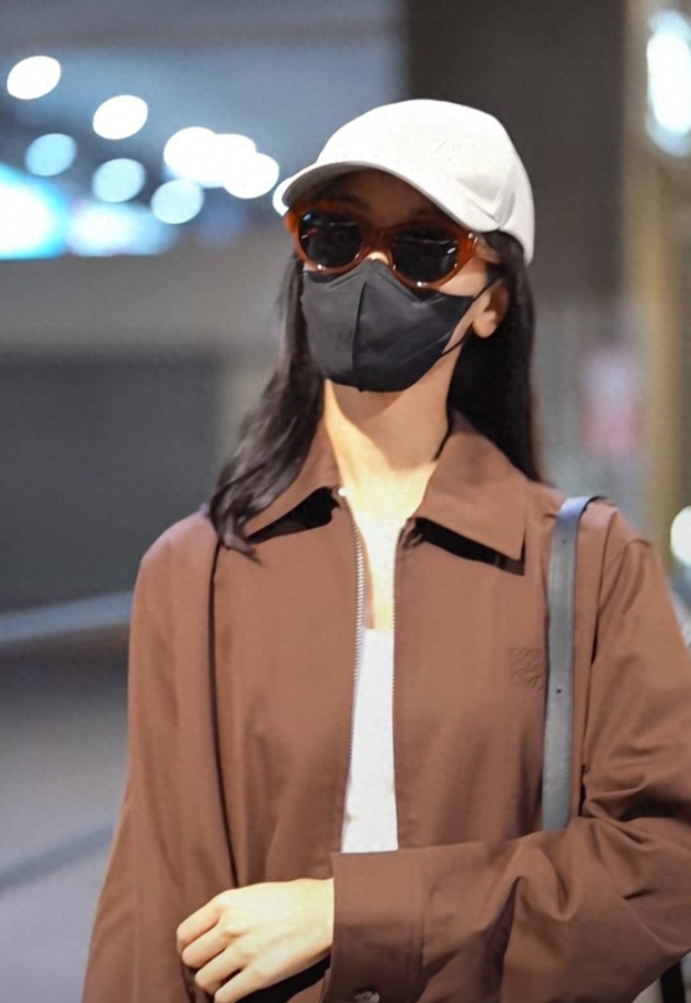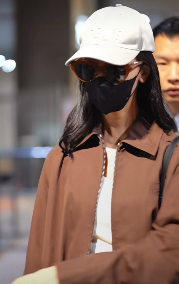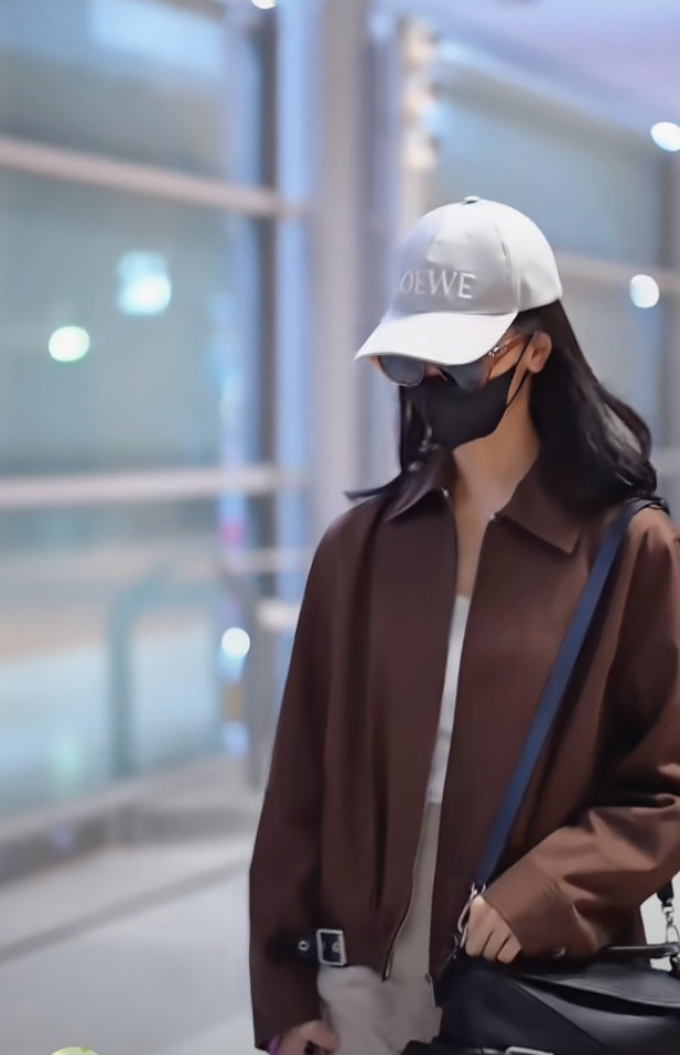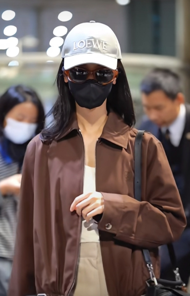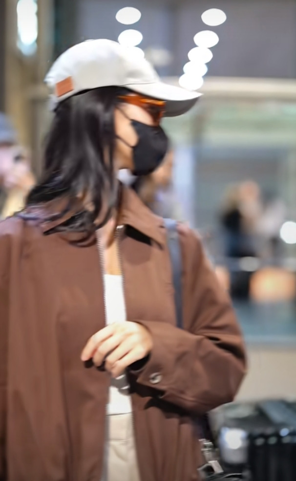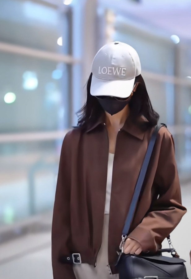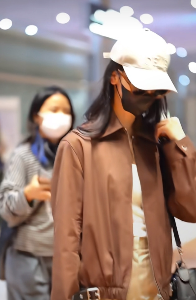 炒股配资平台排名陈都灵巴黎机场造型, 焦糖色夹克搭阔腿裤, 简约高级