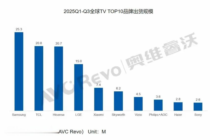 放眼全球市场,根据奥维睿沃数据显示,2025Q1-Q3全球电视出货量中,TCL稳居全球前二、中国品牌第一,持续引领中国电视品牌迈向国际高端化舞台。