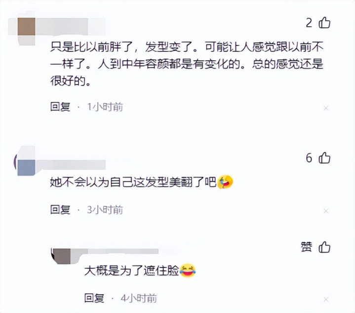 网友对此也是各执一词,有网友觉得她这变化太大了,估计是人到中年变胖了,也有网友反问,她不会真觉得自己这样美翻了吧。
