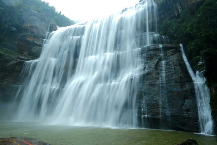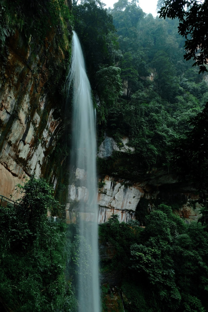 踏入景区,老师们或乘坐观光车或徒步沿着蜿蜒的步道前行,潺潺流水声不绝于耳,空气中弥漫着湿润的草木清香。行至深处,一道银白色的瀑布从悬崖峭壁上飞泻而下,落差达76米的赤水大瀑布如银河倾泻,水雾弥漫间引得教职工及家属们纷纷驻足惊叹,举起相机记录下这壮美的瞬间。
